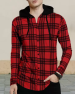 Men Checkered Hooded Neck Cotton Blend Red T-Shirt